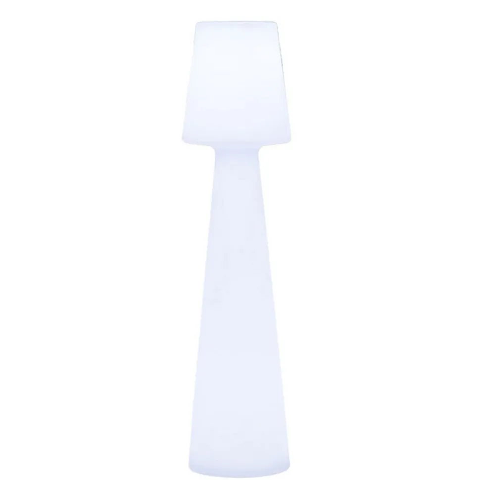 Vloerlamp Lola voor binnen en buiten gemaakt van kunststof De vloerlamp Lola is een icoon van de productfamilie van de Spaanse fabrikant Newgarden. Ze maakt indruk met haar speciale vorm en is een bestseller van het merk Newgarden. De hele armatuur is gemaakt van polyethyleen, een extreem bestendige kunststof die bestand is tegen extreme temperaturen en UV-bestendig is, wat een lange levensduur garandeert. Een lange kabel met stekker maakt een grote actieradius mogelijk, bijvoorbeeld op het terras. De vloerlamp Lola wordt geleverd met een G13 LED buislamp, waarvan het licht de hele witte behuizing van het armatuur verlicht. Een zeer gelijkmatige lichtemissie wordt gegarandeerd door het materiaal. In huis, in een prestigieuze commerciële omgeving of in de horeca – de vloerlamp Lola is overal een stralend, opvallend decoratief object.