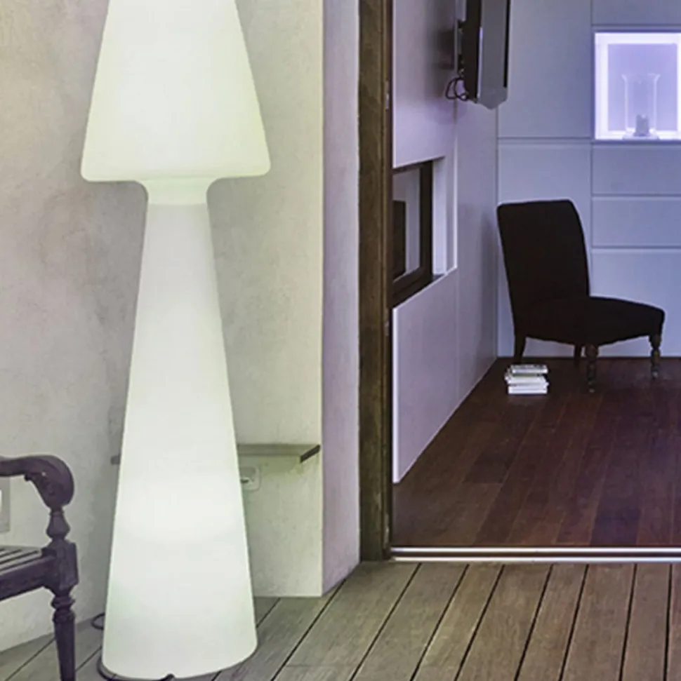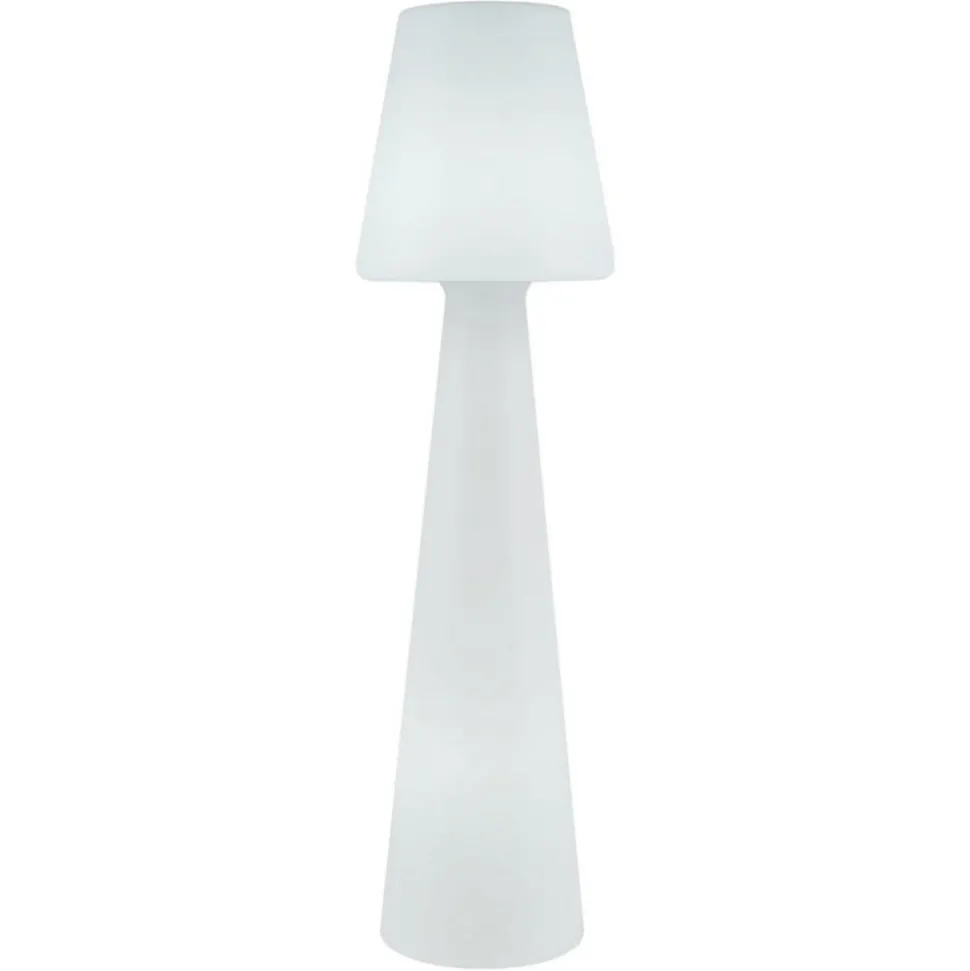 Vloerlamp Lola voor binnen en buiten gemaakt van kunststof De vloerlamp Lola is een icoon van de productfamilie van de Spaanse fabrikant Newgarden. Ze maakt indruk met haar speciale vorm en is een bestseller van het merk Newgarden. De hele armatuur is gemaakt van polyethyleen, een extreem bestendige kunststof die bestand is tegen extreme temperaturen en UV-bestendig is, wat een lange levensduur garandeert. Een 4 meter lange kabel met stekker maakt een grote actieradius mogelijk, bijvoorbeeld op het terras. De vloerlamp Lola wordt geleverd met een G13 LED buislamp, waarvan het licht het hele witte lichaam van het armatuur verlicht. Een zeer gelijkmatige lichtemissie wordt gegarandeerd door het materiaal. In huis, in een prestigieuze commerciële omgeving of in de horeca – de vloerlamp Lola is overal een stralend, opvallend decoratief object.