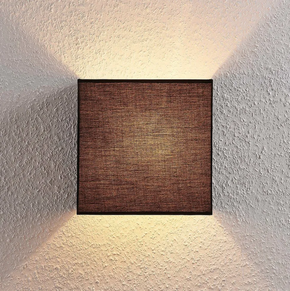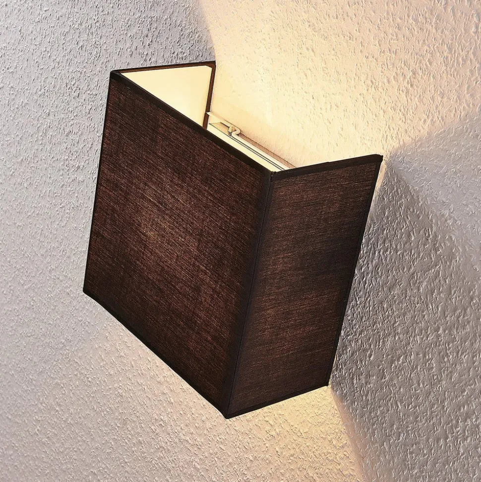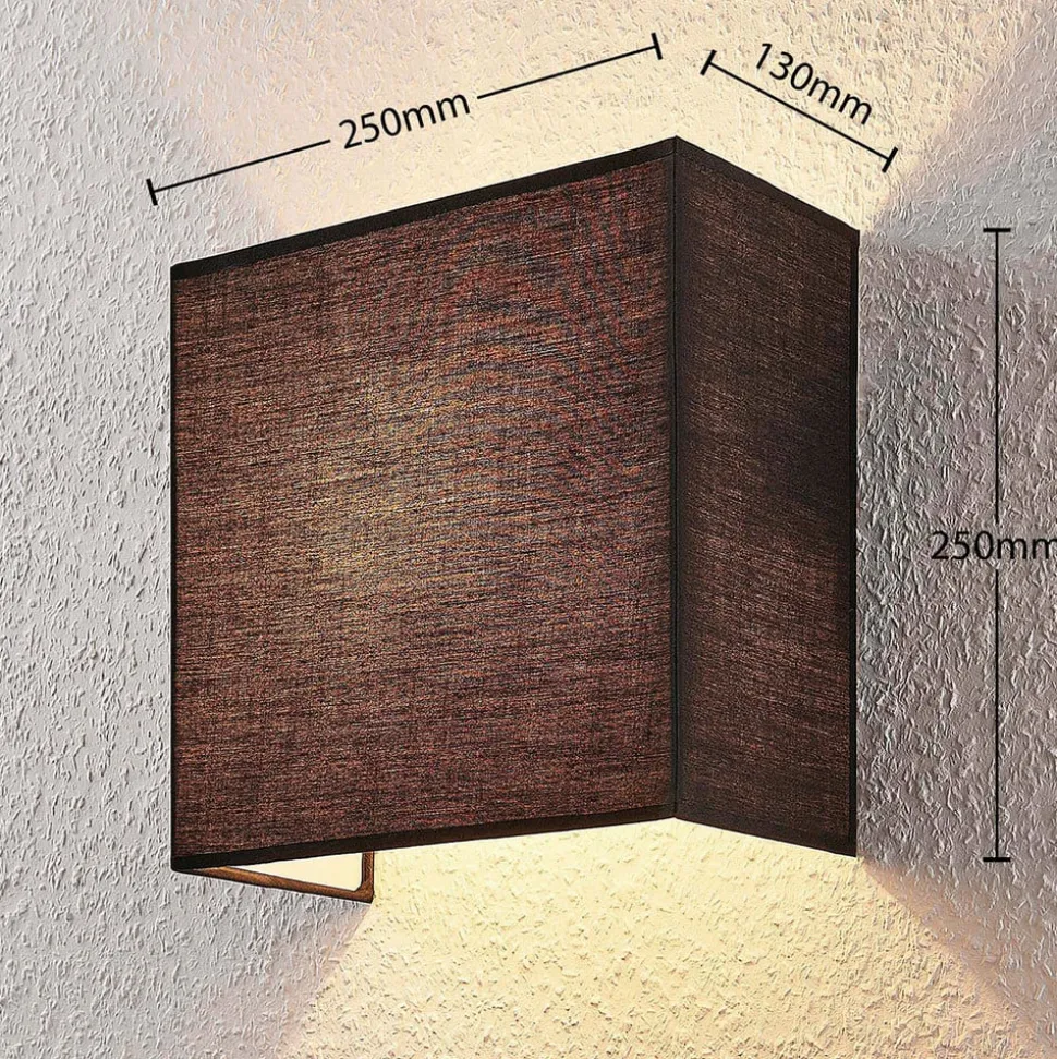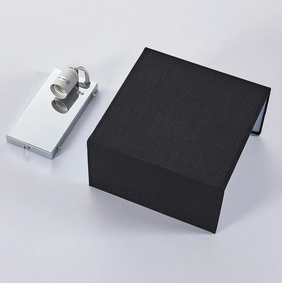 Wandlamp Adea van stof, 25 cm, vierkant, zwart