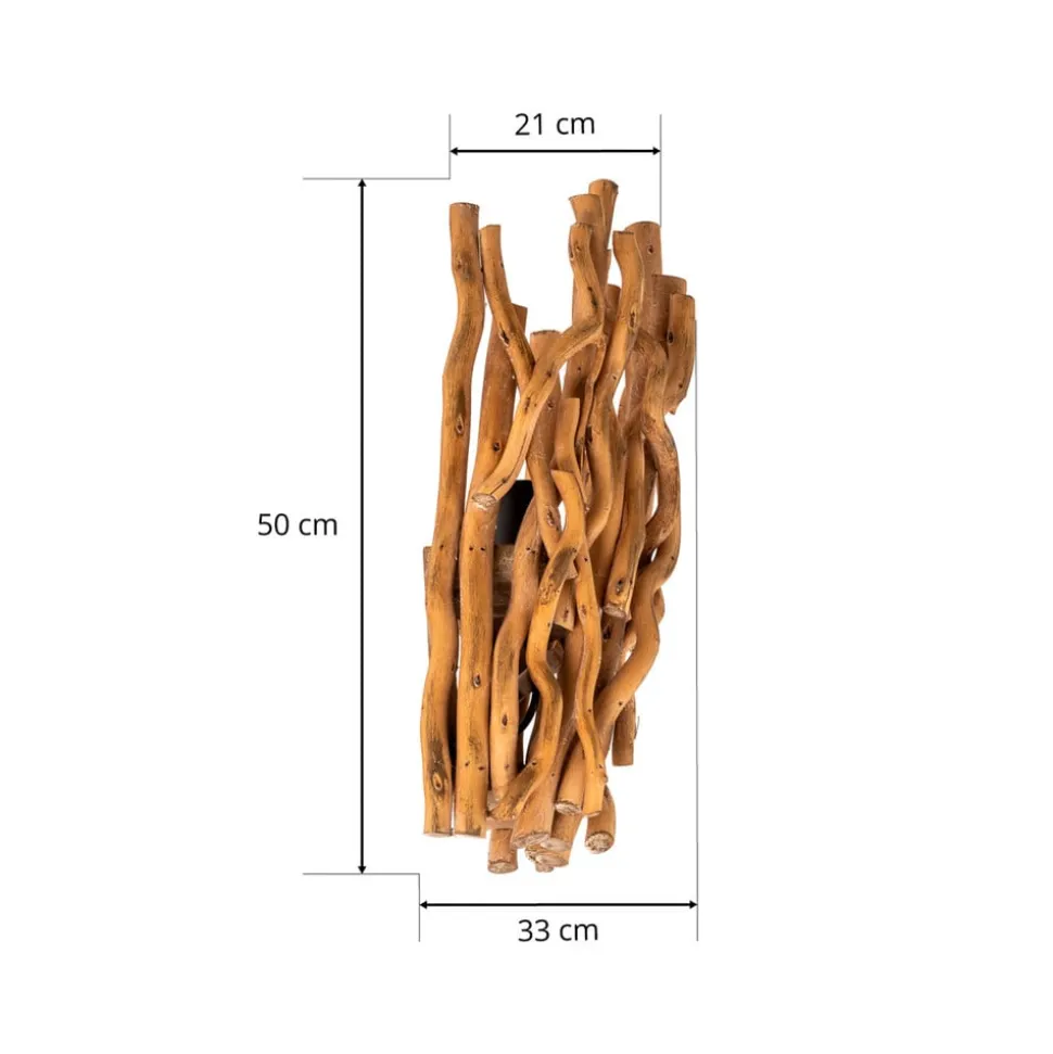 De wandlamp Agar valt op door zijn kap van licht hout, die elke ruimte een warme en uitnodigende sfeer geeft. Het tijdloze ontwerp past naadloos in verschillende interieurstijlen, of het nu in de woonkamer, de hal of de eetkamer is. De natuurlijke houtlook zorgt voor een harmonieuze verbinding tussen verlichting en Raumgestalt, waardoor een unieke sfeer wordt gecreëerd.