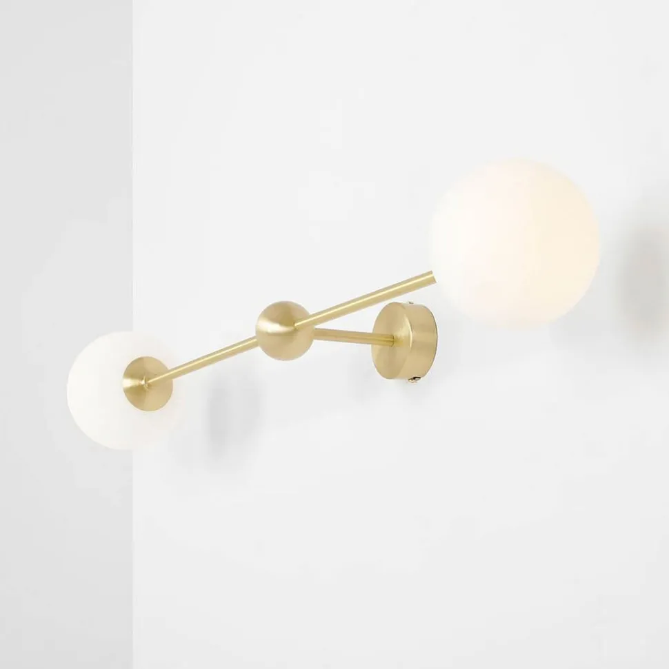 De wandlamp Alison, 2-lamps, maakt indruk door de harmonieuze combinatie van mat glas en hoogwaardig metaal in messing en wit. Dit moderne verlichtingselement past naadloos in verschillende woonruimtes zoals de woonkamer, hal en eetkamer en zorgt voor een stijlvolle sfeer. De in Europa vervaardigde lamp staat voor kwaliteit en tijdloos design.