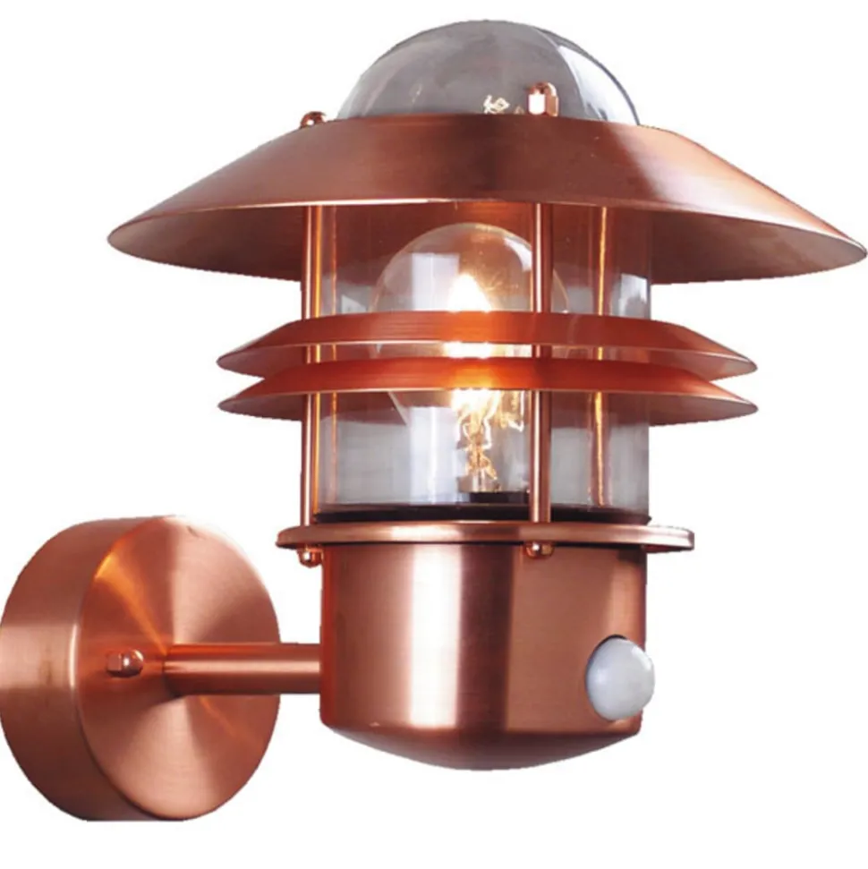 Koperen outdoor wandlamp Blokhus met bewegingsmelder