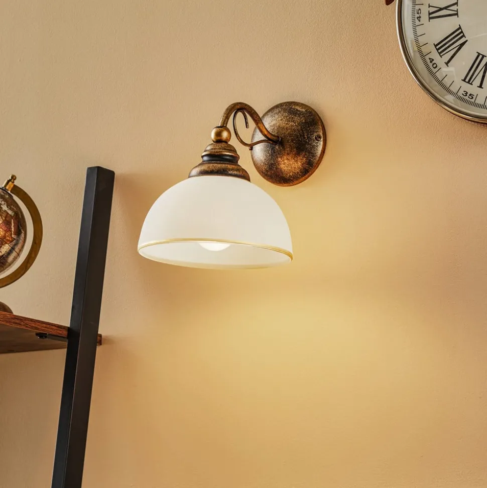 De wandlamp Casale met glazen kap combineert antieke charme met moderne functionaliteit. De lamp is gemaakt van hoogwaardig metaal en glas en heeft een aantrekkelijke combinatie van oud messing en wit. Deze stijlvolle verlichtingsoplossing is ideaal voor woon- en eetkamers en geeft elke ruimte een bijzonder tintje. Dankzij de dimbaarheid via een externe dimmer kan de lichtintensiteit flexibel worden aangepast om de gewenste sfeer te creëren.