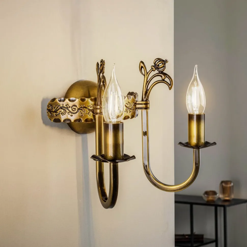 De wandlamp Castle in licht gepatineerd messinglook combineert antieke charme met moderne functionaliteit. Deze 2-lamps lamp is gemaakt van hoogwaardig metaal en past naadloos in verschillende woonruimtes zoals de woonkamer, hal en eetkamer. De speciale patina geeft de lamp een tijdloos karakter dat zowel klassieke als moderne interieurstijlen aanvult.