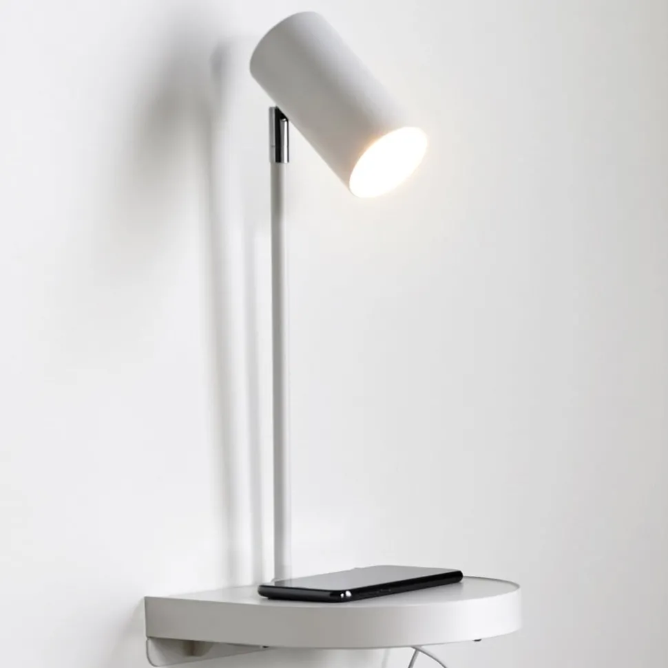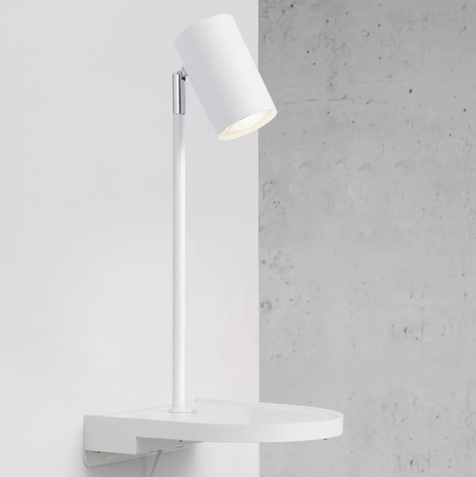 Het model Cody kan bijzonder handig aan de zijkant van bedden of stoelen worden bevestigd, omdat dankzij de afgeronde steun kleine voorwerpen handig kunnen worden neergezet of voorwerpen doelbewust kunnen worden geënsceneerd. Bovendien is aan de zijkant een USB-poort geïntegreerd, die bijvoorbeeld kan worden gebruikt om een mobiele telefoon op te laden, die ook handig op de plank kan worden geplaatst. Voorts is een dunne staaf met een cilindrische lichtbron bevestigd, waarvan de lichtkegel door draaien en zwenken individueel kan worden ingesteld. De lichtbron is niet inbegrepen in de leveringsomvang.