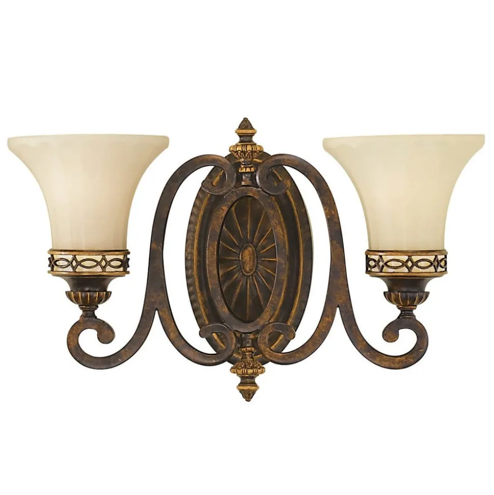 Het walnootkleurige montuur fascineert met sierlijke versiering, de twee lampenglazen door hun sierlijke vorm, waarmee ze dit ensemble op een prachtige manier voltooien.