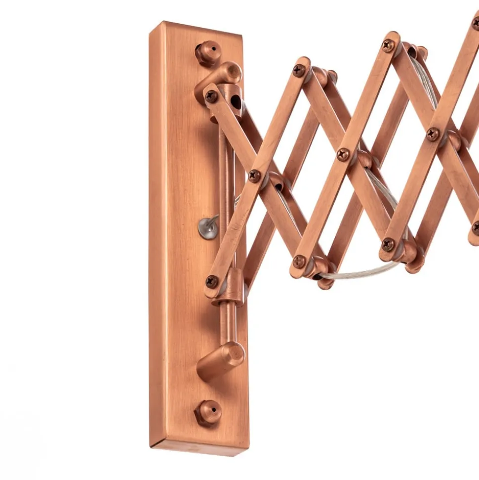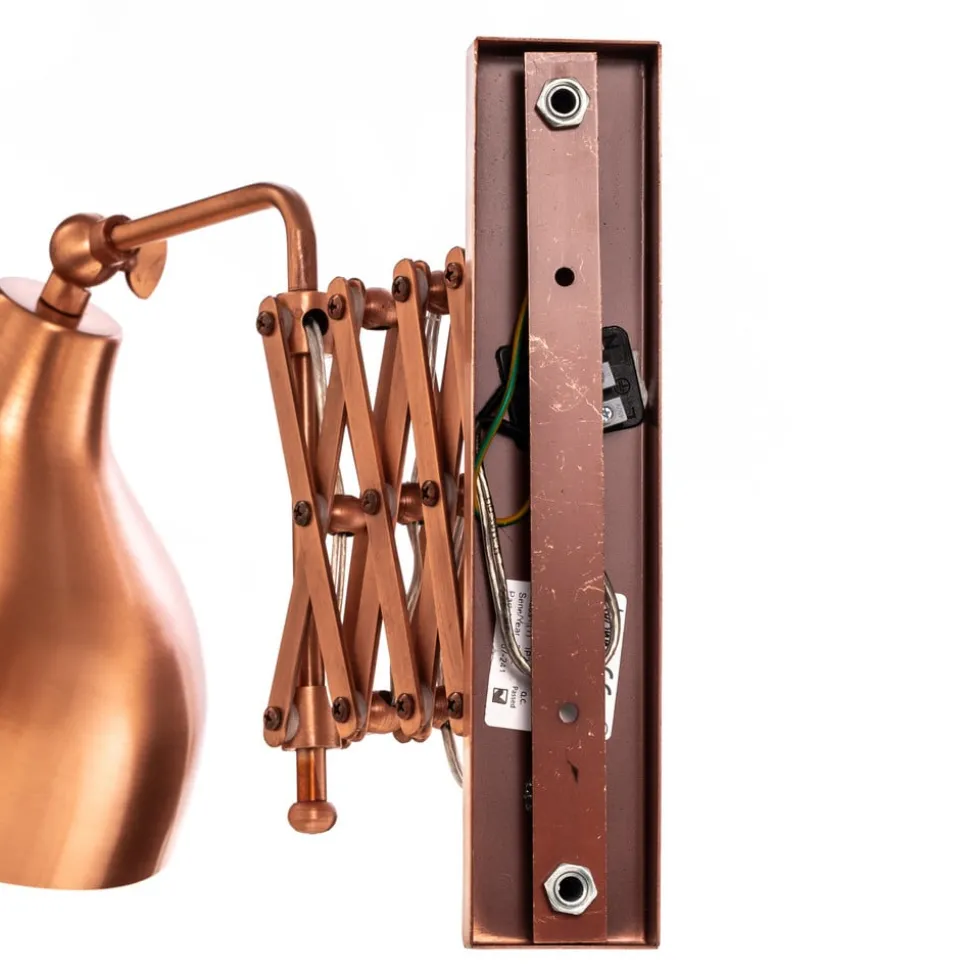 De wandlamp HAP-9082-CPR combineert een stijlvol ontwerp met functionele flexibiliteit. De lamp is gemaakt van hoogwaardig ijzer en metaal en heeft een elegante koperkleur die elke ruimte een warme en uitnodigende sfeer geeft. Het opvallende schaararmontwerp maakt een individuele aanpassing van de lichtbron mogelijk, waardoor deze lamp ideaal is voor gebruik in woonkamers, slaapkamers of studeerkamers.