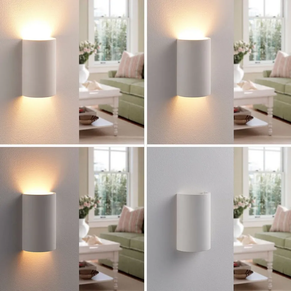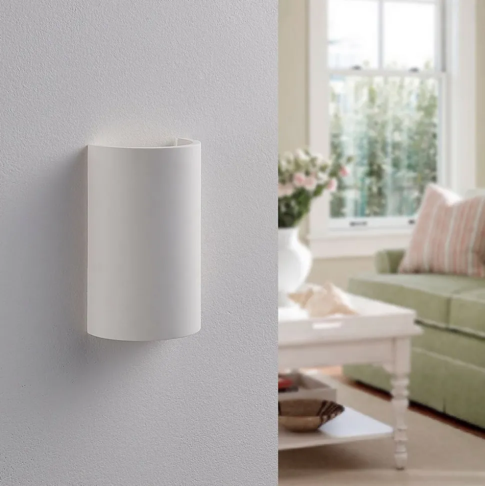 Colja – Gipsen wandlamp in halfronde vorm Dankzij de halfronde vorm is de lichtemissie van deze gipsen wandlamp alleen naar beneden en naar boven gericht. Dit betekent dat er geen verblinding is en dat je alleen een gezellige gloed met een hoge comfortfactor waarneemt. Als je wilt, kun je het oppervlak van de Colja wandlamp van gips versieren met een motief of gewoon in één kleur schilderen, want gips is een materiaal dat zich leent voor dit soort maatwerk.