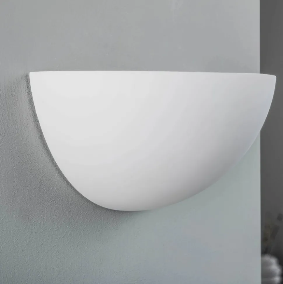 De halfronde wandlamp Pascali van overschilderbaar gips maakt indruk met haar indirecte lichtuitstraling Pascali is qua vorm een klassieke wandlamp – harmonieuze contouren, veelzijdige toepassingsmogelijkheden en warm, zacht licht dat elke ruimte flatteert en zeer uitnodigend is. Een echte aanrader voor privévertrekken in alle soorten en stijlen, want zowel klassieke interieurs als moderne flats en huizen kunnen perfect worden aangevuld met deze vorm van verlichting. Wit als kleur is zeker een klassieker met een tijdloze touch die jarenlang plezier zal blijven geven. Maar voor wie op zoek is naar individuele ontwerpmogelijkheden, is de Pascali wandlamp ook een prachtig verlichtingsinstrument, omdat het gipsen oppervlak een persoonlijk ontwerp mogelijk maakt. Hiervoor worden handschoenen en schuurpapier met de wandlamp meegeleverd en na de juiste oppervlaktebehandeling en grondverf kan Pascali naar wens worden geschilderd of overgeschilderd. Toon-op-toon met de muurkleur, een speciaal contrast of een individueel motief – dit alles is probleemloos mogelijk!