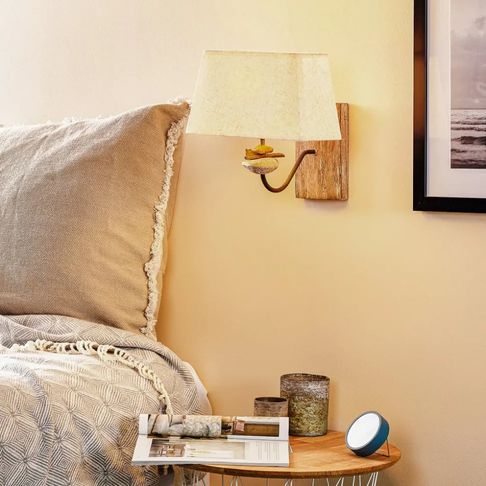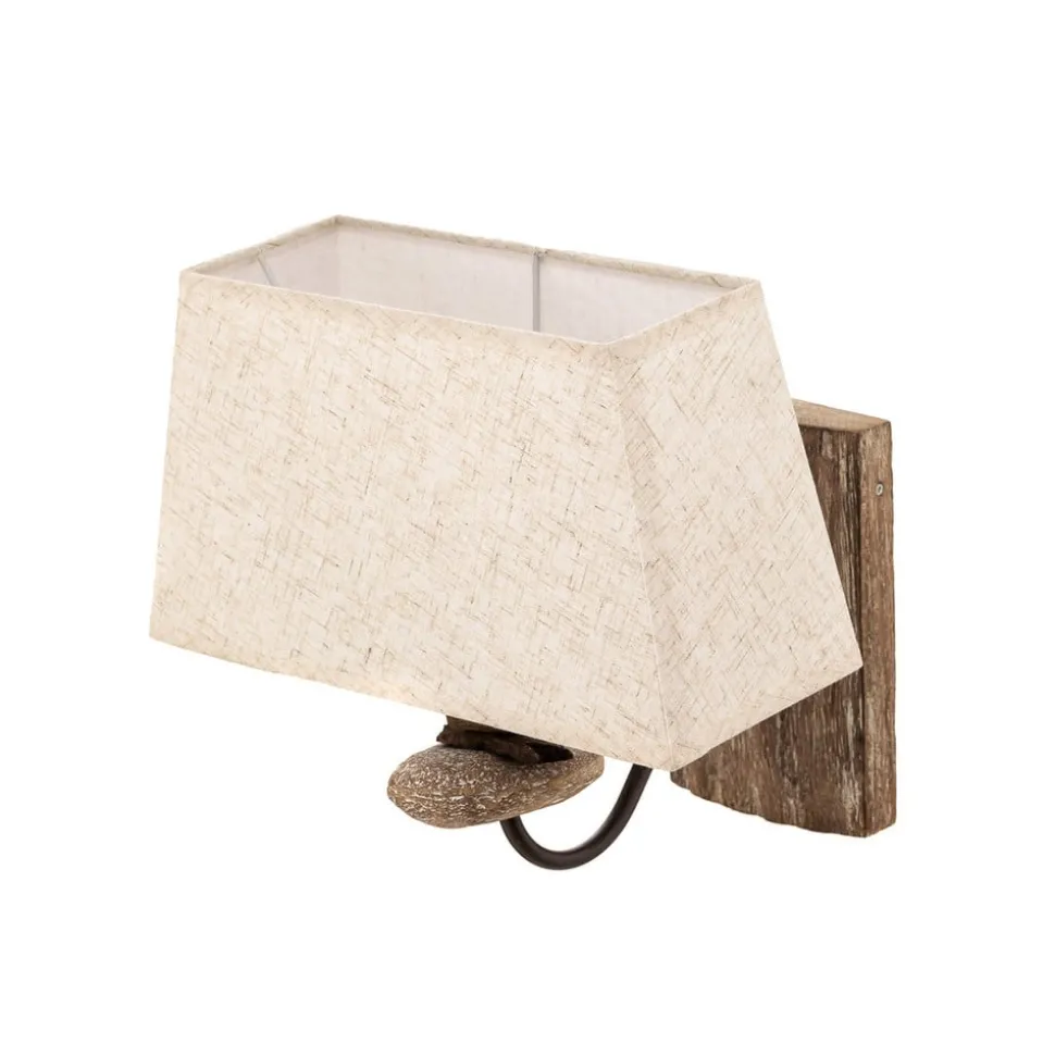 De wandlamp Seregon combineert rustieke charme met tijdloze elegantie. Het ontwerp, gekenmerkt door het harmonieuze samenspel van steendecor en een crèmekleurige stoffen kap, past naadloos in verschillende interieurstijlen. De combinatie van hout, textiel en kunststof geeft de lamp een warme uitstraling, die zowel in de woonkamer als in de slaapkamer voor een gezellige sfeer zorgt.