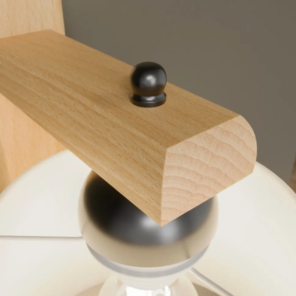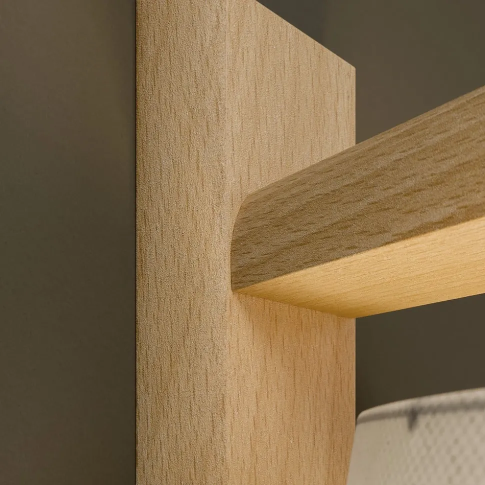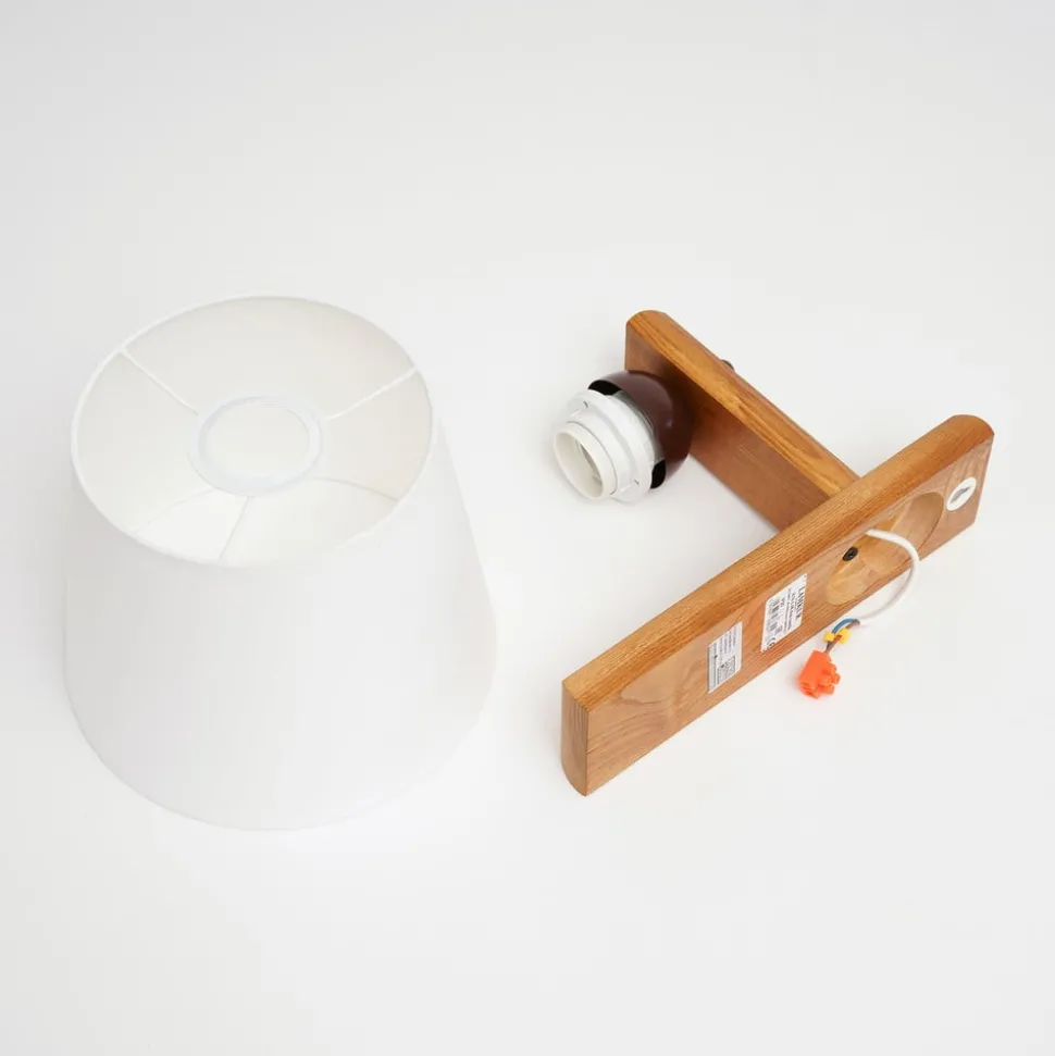 Wandlamp Zweden, wit, textiel, eikenhout, breedte 20 cm