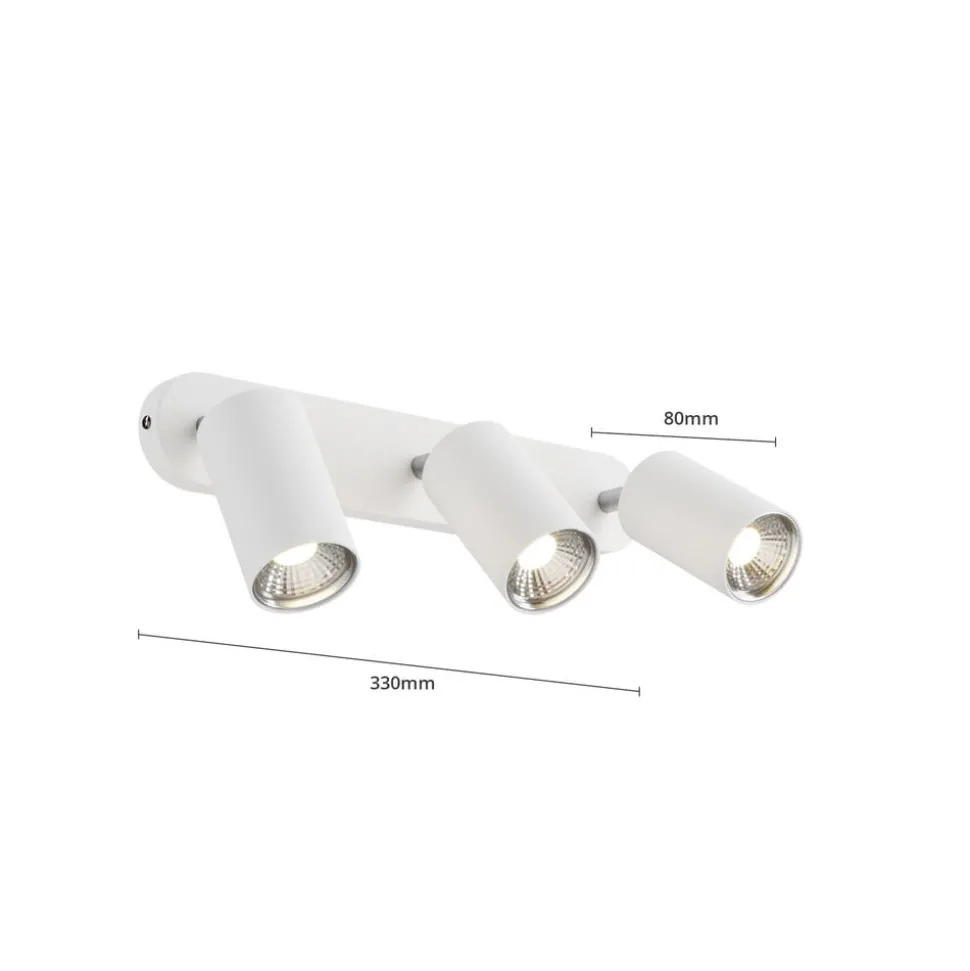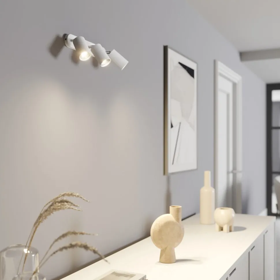 De wandspot Eye Spot 3-lamps in elegant wit combineert modern design met functionele flexibiliteit. Deze spot is gemaakt van hoogwaardig metaal en past naadloos in verschillende woonomgevingen, zoals de woonkamer, hal, keuken en eetkamer. De 3-lamps constructie maakt een gerichte verlichting mogelijk, die zowel accenten legt als een aangename basisverlichting creëert.
