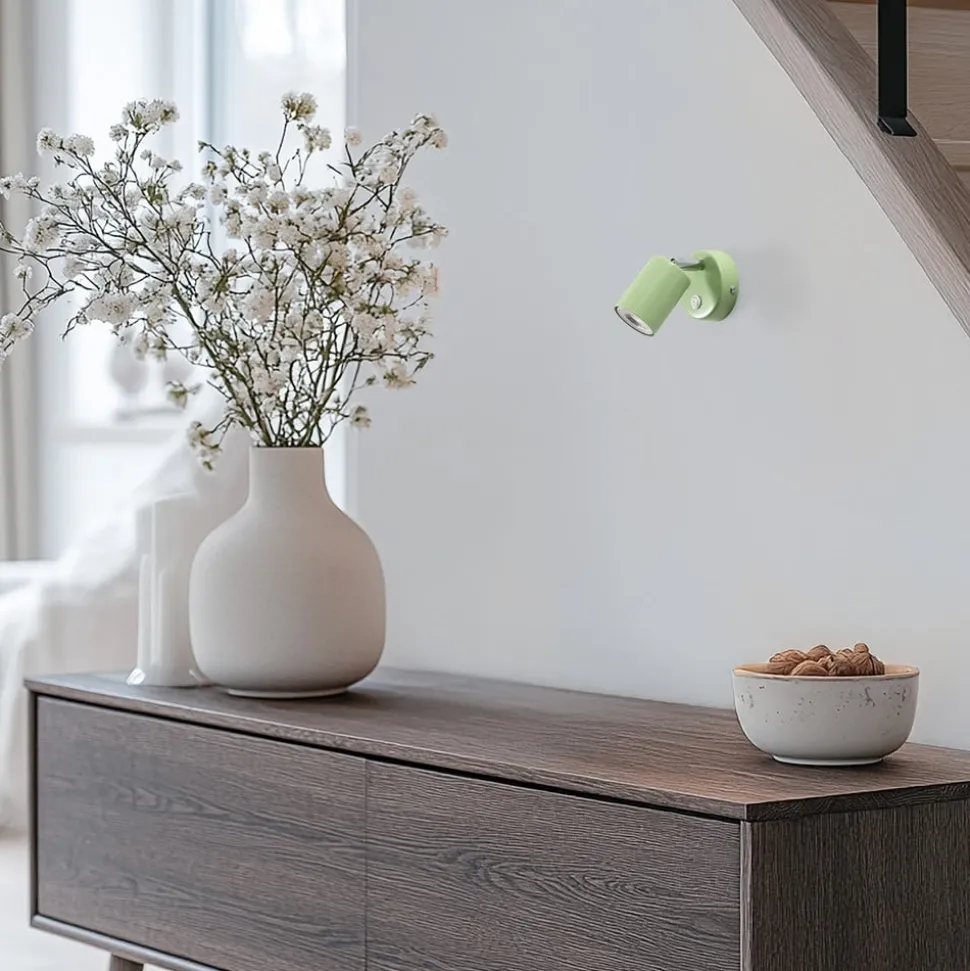 De wandspot Fun overtuigt door zijn moderne design en hoogwaardige afwerking van staal. De lichtgroene kleur geeft elke ruimte een frisse en levendige uitstraling. Dankzij de verstelbare constructie kan de lichtstraal nauwkeurig worden gericht om gerichte accenten te leggen in de woonkamer, eetkamer of slaapkamer.
