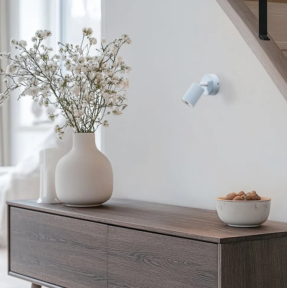 De wandspot Livia combineert een stijlvol design met functionele flexibiliteit. Deze spot is gemaakt van robuust staal en hoogwaardig kunststof en biedt een duurzame verlichtingsoplossing. De lichtblauwe kleur geeft elke kinderkamer een frisse en vriendelijke sfeer. Dankzij de verstelbare constructie kan het licht gericht worden afgestemd om verschillende delen van de ruimte optimaal te verlichten.
