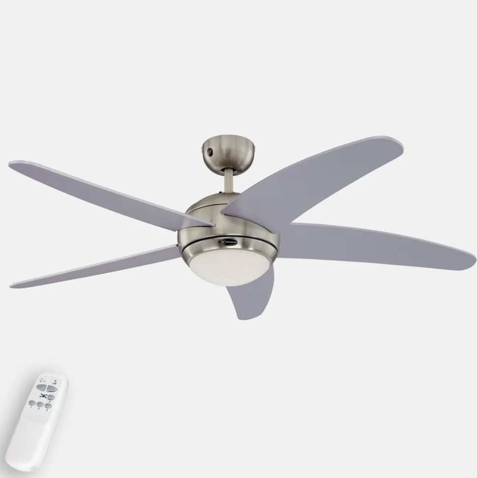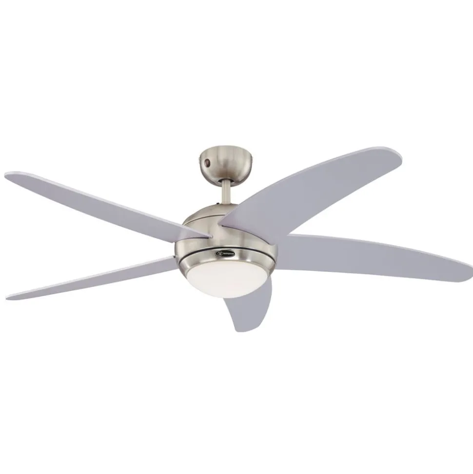 De elegante plafondventilator Bendan heeft afgeronde vleugels in modern zilver. Onder het opaalwitte melkglas zorgt een halogeenlamp voor aangenaam licht. De afstandsbediening voor ventilator en verlichting en de lamp zijn bij de levering inbegrepen. Optioneel kan een wandschakelaar worden gebruikt (zie accessoires). Geschikt voor ruimtes tot 30 m².