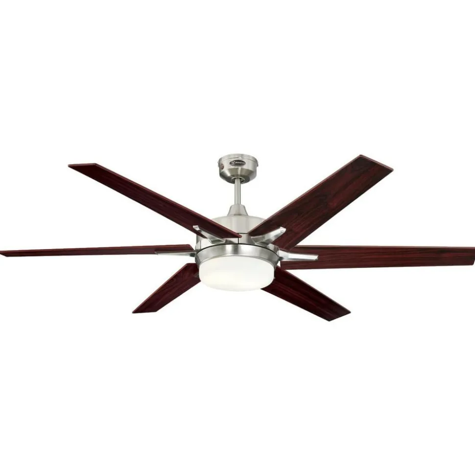 De plafondventilator Cayuga is uitgerust met zes draaibare vleugels in licht esdoorn en palissanderhout, in combinatie met de behuizing in geborsteld nikkel oogt hij zeer elegant en modern. Cayuga is ideaal voor het koelen van grotere ruimtes. Uitgerust met verlichting. Inclusief afstandsbediening.