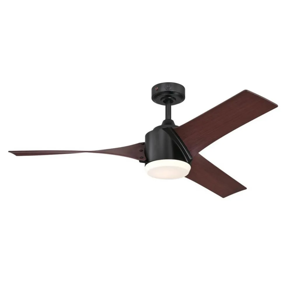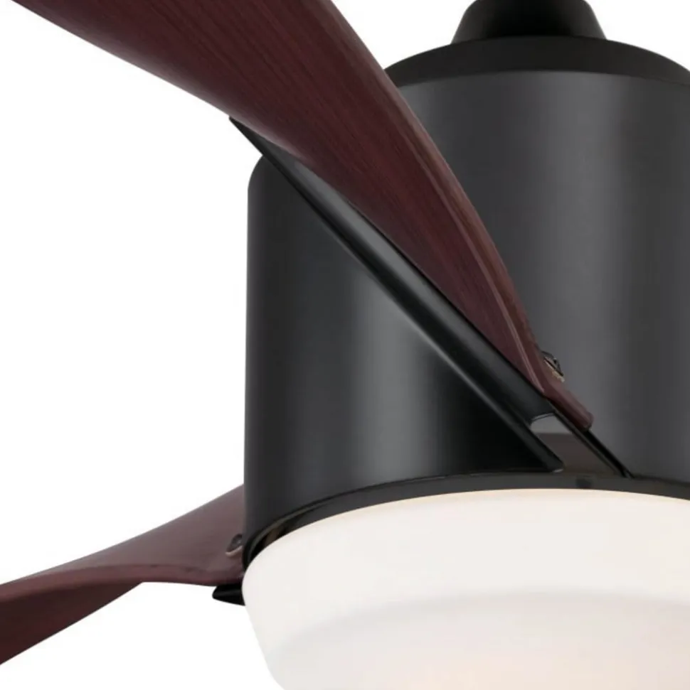 De geïntegreerde, efficiënte en energiebesparende 14 watt LED-module geeft warmwit licht en kan apart van de ventilator worden bediend en gedimd. Alles wordt geregeld met de meegeleverde afstandsbediening.