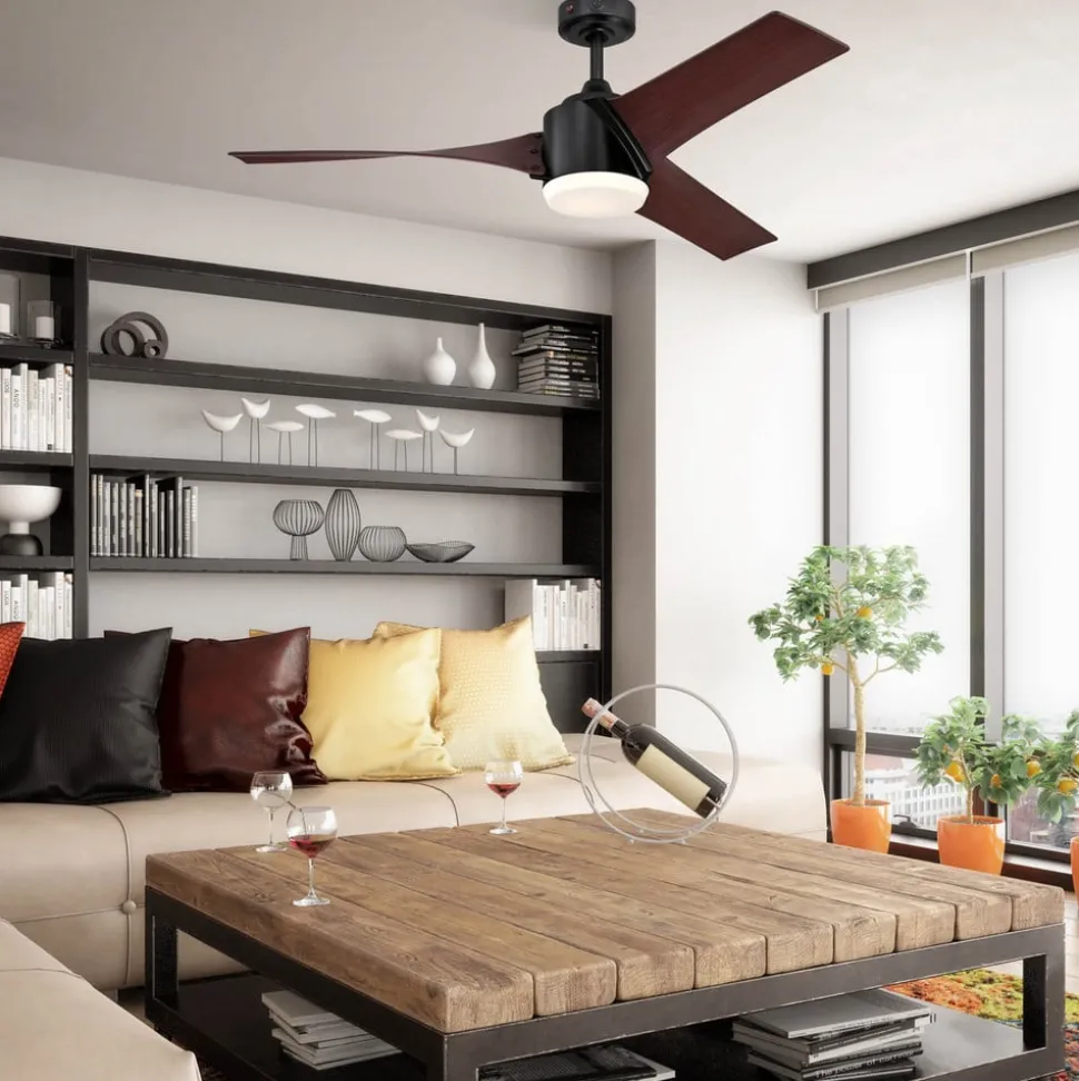 Voor ruimtes tot 20 vierkante meter: plafondventilator Evan met LED-licht, dimbaar via afstandsbediening