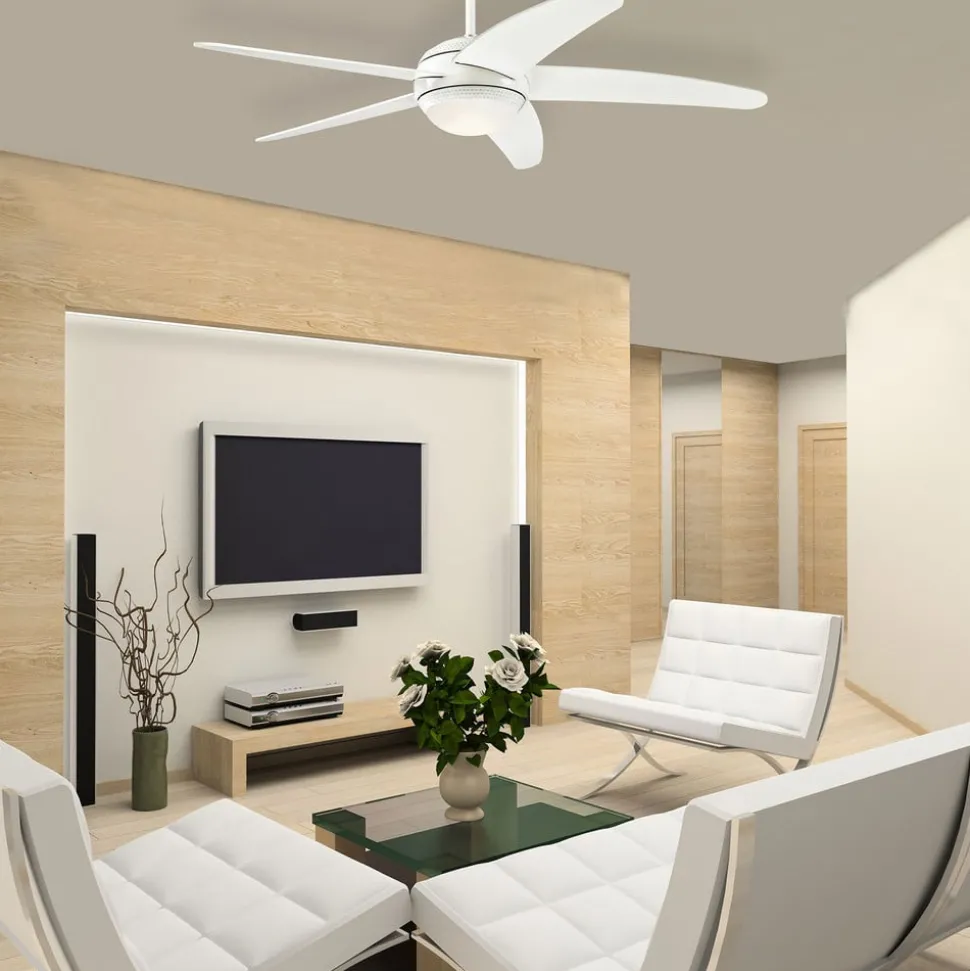 Uitgerust met een zomer- en winterfunctie, d.w.z. afhankelijk van of de plafondventilator in voor- of achteruit wordt gebruikt, wordt een luchtkoeling of een gelijkmatige verdeling van de verwarmde lucht bereikt.