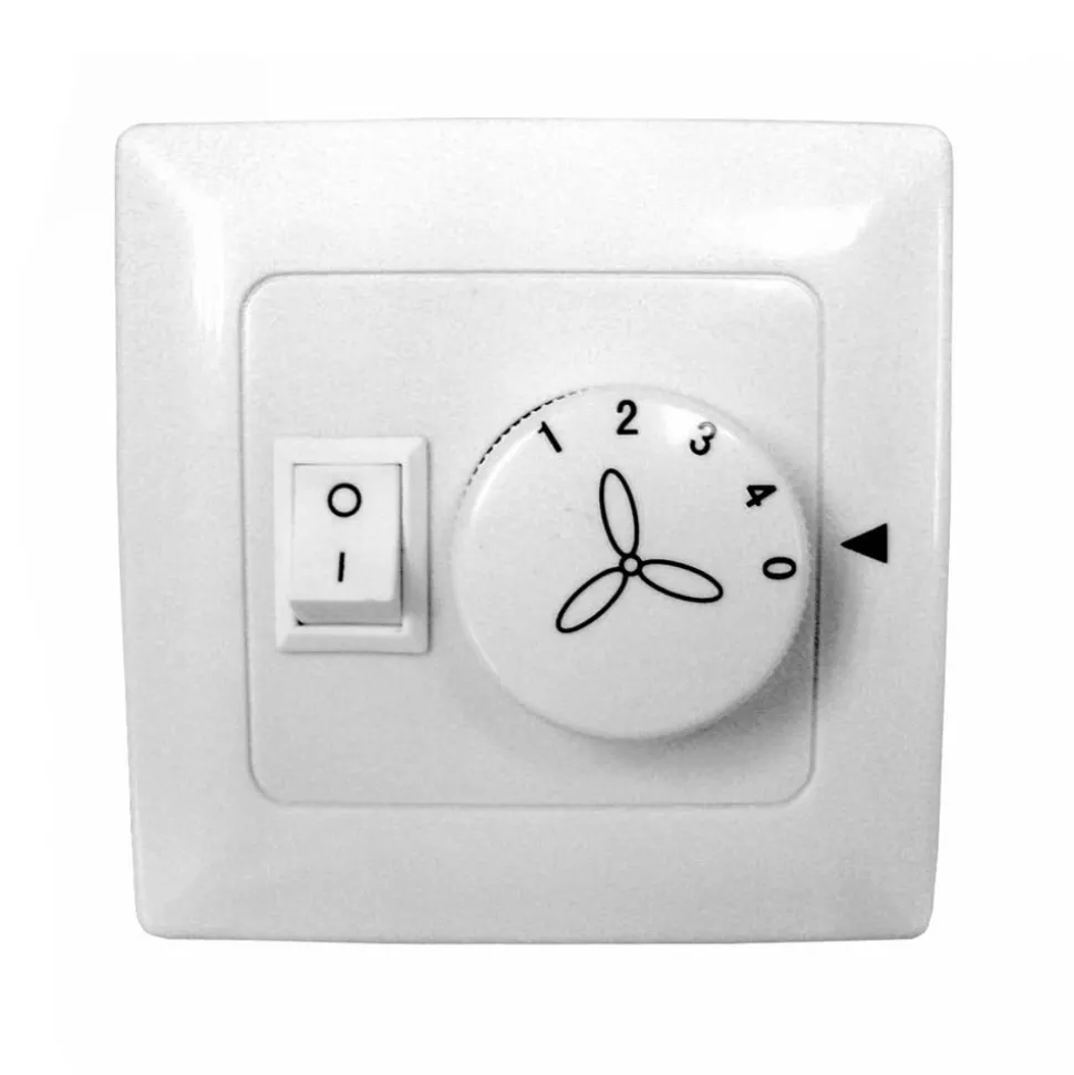 Met deze wandschakelaar kunnen plafondventilatoren van Westinghouse met verlichting gemakkelijk worden bediend – geschikt voor inbouwmontage Met deze schakelaar kan de draaisnelheid van plafondventilatoren worden geregeld (maximaal vier niveaus) en kan het licht afzonderlijk worden geschakeld Opmerking: Voor de installatie is een 5-aderige kabel van deze schakelaar naar de plafondventilator vereist.