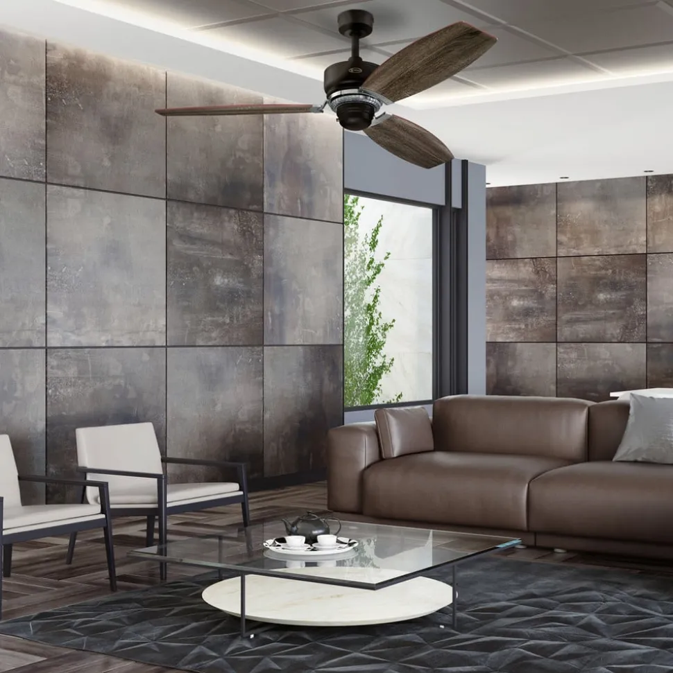 Bronskleurige ventilator met rustieke rotorbladen van drijfhout