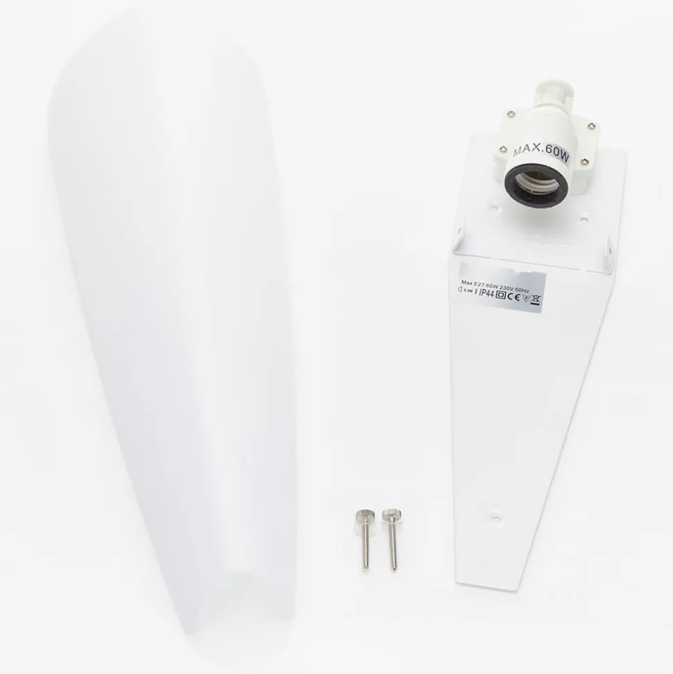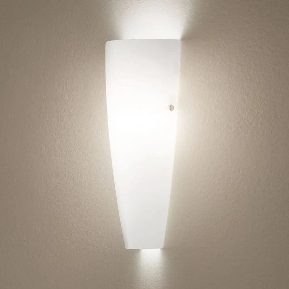 Wandlamp, beveiligd tegen spatwater, waardoor hij geschikt is voor toepassing in natte ruimtes, zoals badkamers, douches en sauna. Het witte glas geeft warm, aangenaam licht. De lamp is door de mooie vormgeving op verschillende manieren en plaatsen toepasbaar.