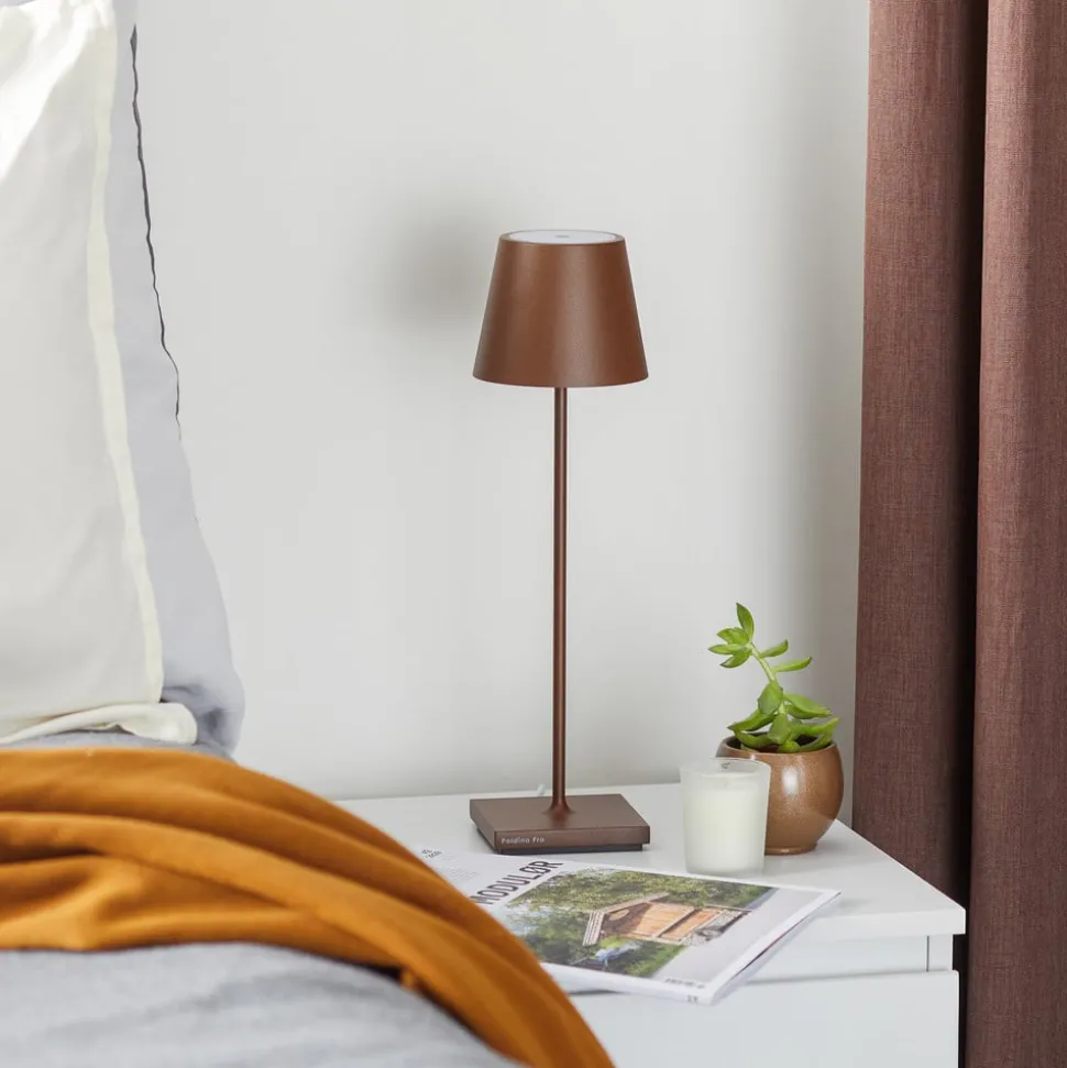 Zafferano Poldina LED tafellamp oplaadbare batterij, mat, bruin