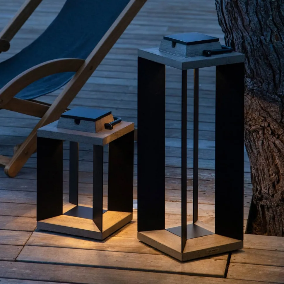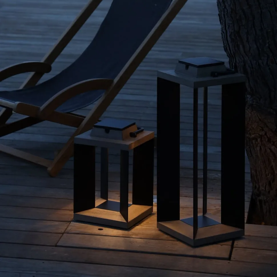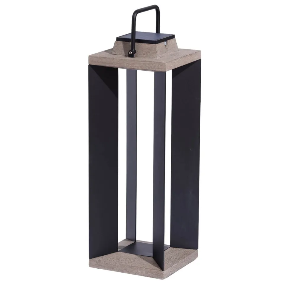 De moderne lantaarnvorm, de neutrale kleuren en de twee oplaadmogelijkheden maken de draagbare LED-zonnelantaarn Teckalu tot een onmisbaar accessoire voor buitenverlichting.