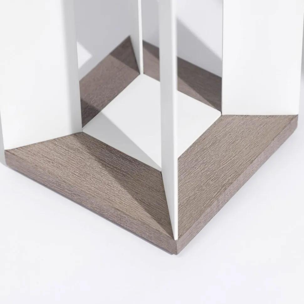 Duratek: Het teakhout is uiterst gemakkelijk te onderhouden. Het werd eerst krachtig geborsteld om een gestructureerde afwerking te verkrijgen. Na een eerste laag waterdichte primer werden vervolgens vijf lagen grijze afwerking aangebracht. Dit proces beschermt het hout tegen weersinvloeden, UV-stralen en diverse vlekken zoals wijn, koffie of olie. De grijze kleur onderstreept de hedendaagse chique. Onderhoud: Niet oliën. Schoonmaken met zeepwater.