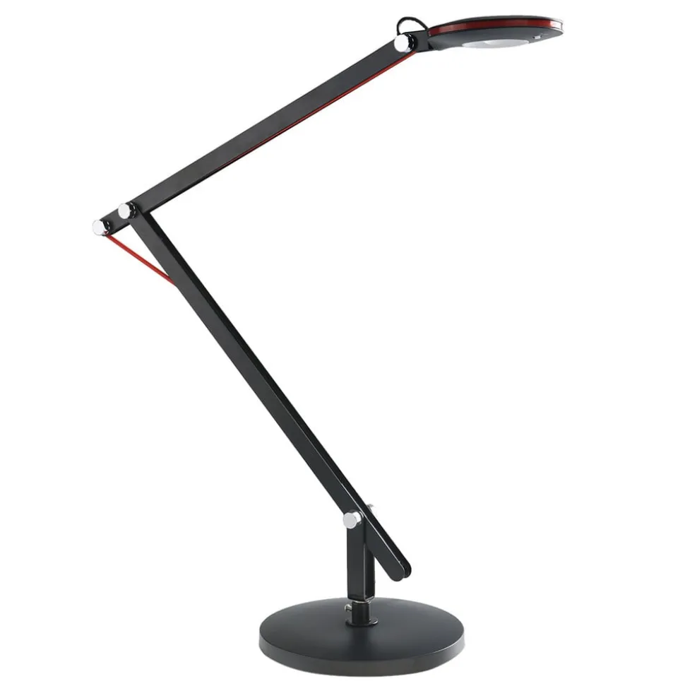Met een flexibele arm verbonden via een stabiel scharnier, zorgt de Cosmos LED bureaulamp voor helder werklicht – precies waar het nodig is. Het metalen frame is in neutraal zwart gehouden, waarmee de rode kabel elegant contrasteert. De kleur rood komt terug in het ronde hoofdgedeelte en omgeeft het hoofd volledig. Hierdoor ontstaat een nobel kleuraccent dat de Cosmos bureaulamp een serieuze en tegelijkertijd warme uitstraling geeft. Om hem bij het begin van het werk in te schakelen, hoeft u alleen maar zachtjes op de schakelaar in het hoofdgedeelte te drukken. Hij is aan de voorkant gemonteerd, is gemakkelijk te bereiken en geeft bij indrukken een helder, neutraal licht.