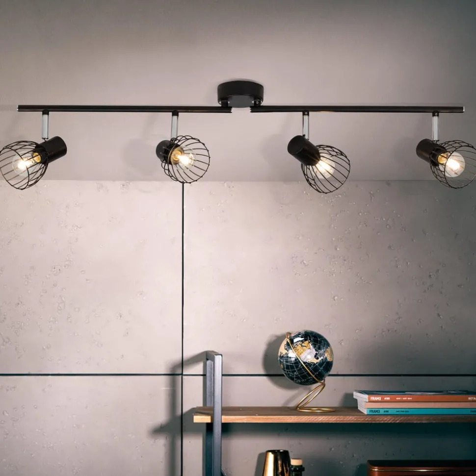 Zwarte plafondspot, lengte 81,5 cm, zwart, 4-lamps,